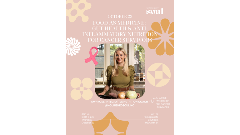Free Workshops for Cancer Survivors by Amy Koss, Integrative Nutrition Health Coach and founder of Nourished Soul.